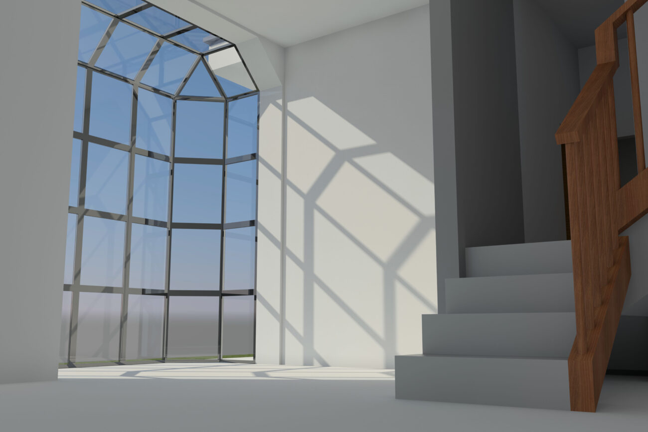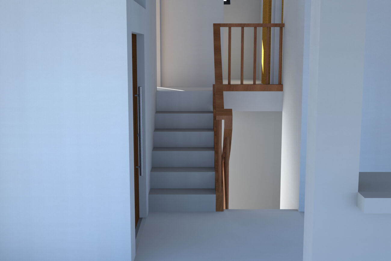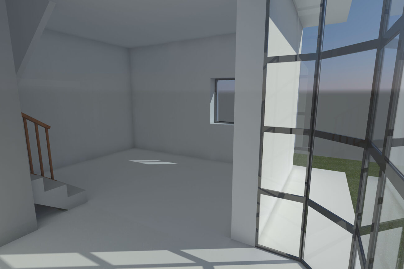 This was a small project created to test Autodesk’s cloud rendering capabilities. What’s interesting about this project is that it’s basically two different building joined by a stairwell. The west side features a 2 floor structure starting from +0.00 elevation while a third room is attached at the east side of the stair with a garage underneath it going below the ground elevation. The results on Autodesk’s cloud service were good enough but for some reason it misread the material colors and textures and couldn’t render them the same way they appeared in the actual program.
