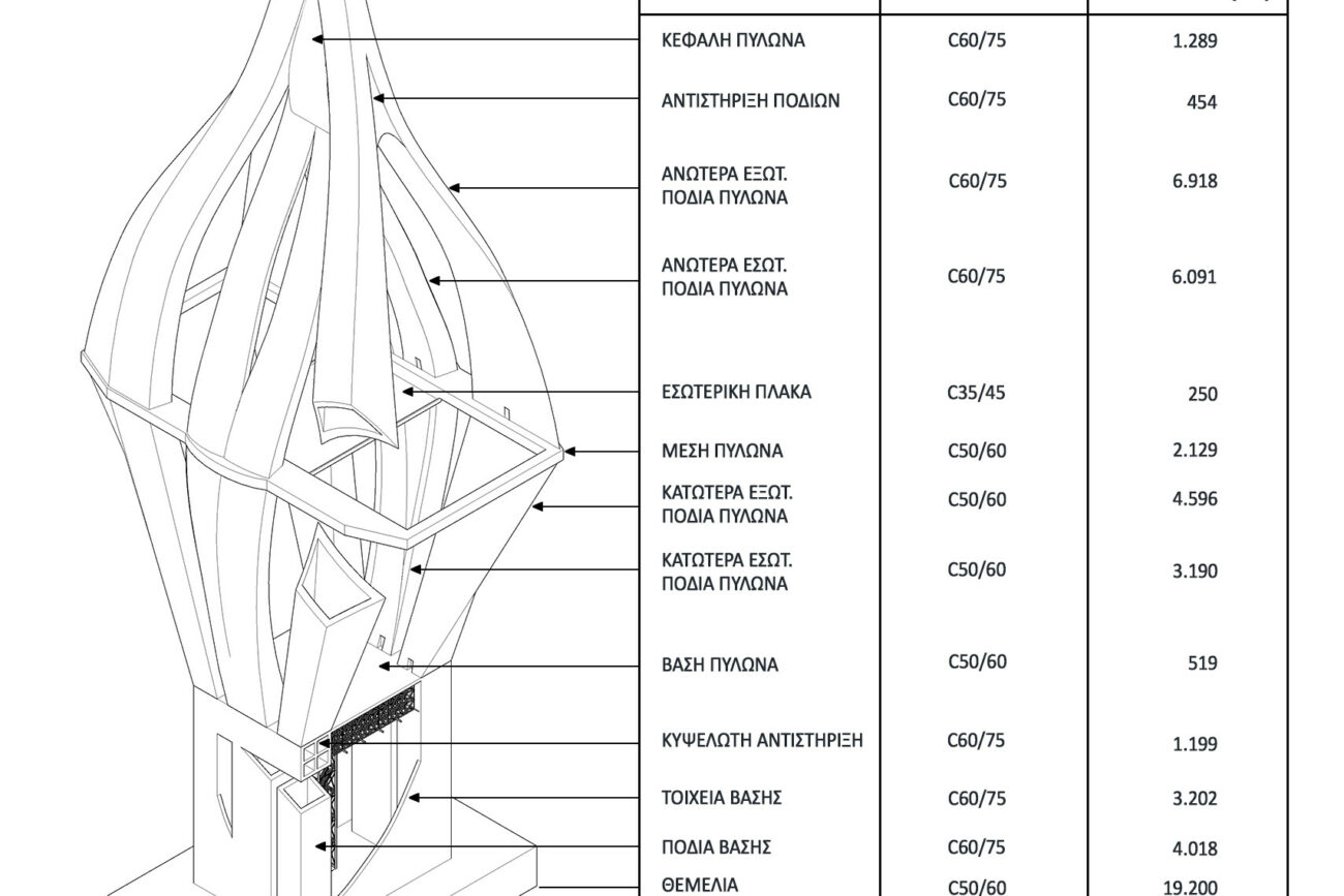 Part of the project was to also develop some architectural plans and describe details of the bridge such as the layers of the deck and its parts underneath it. Apart from that we also included detailed imagery of different sections of the bridge and we calculated a list of the different types of concrete strengths that would be used along with their amounts. Ofcourse such numbers would only come close to reality by calculating the overall structure in the final stages of an inclusive research with a more precise structural integrity analysis. Therefore, our calculations were only theoretical and had a large margin of error.